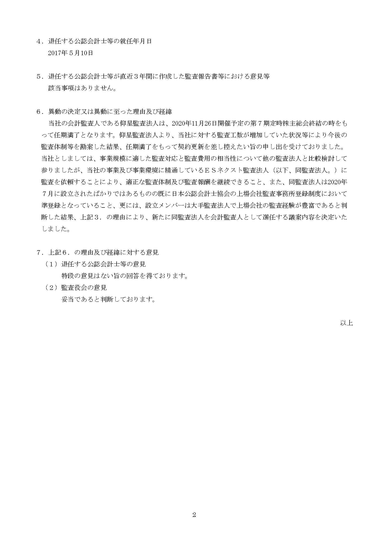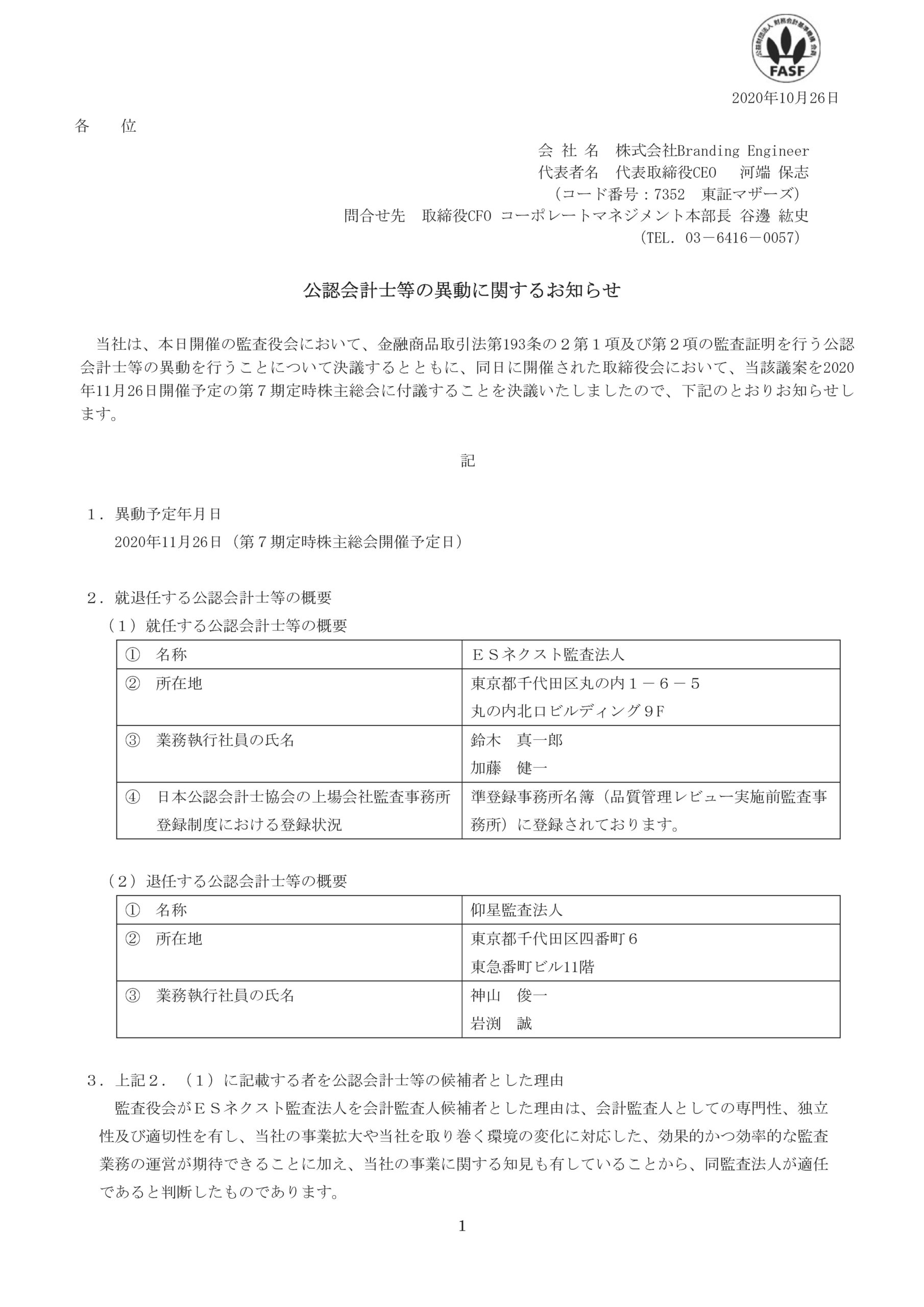 公認会計士等の異動に関するお知らせについて
